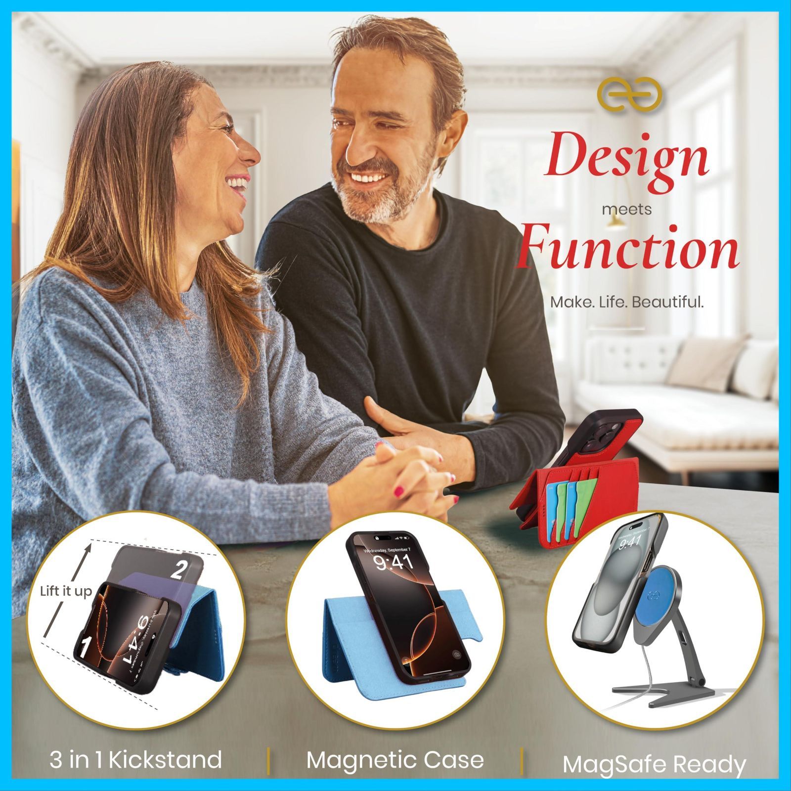 多機能スマホウォレット - 4つのカードホルダースロットにRFID保護機能を搭載、3~6枚のクレジットカードと5~10枚の紙幣を快適に収納できます。開きやすいクラスプ - ウォレットを簡単に開閉できます。スマートな、水平方向と垂直方向の視聴を可能にするキックスタンド、完全に調整可能なので、どこでもハンズフリーでビデオ通話、読書、映画鑑賞ができます。