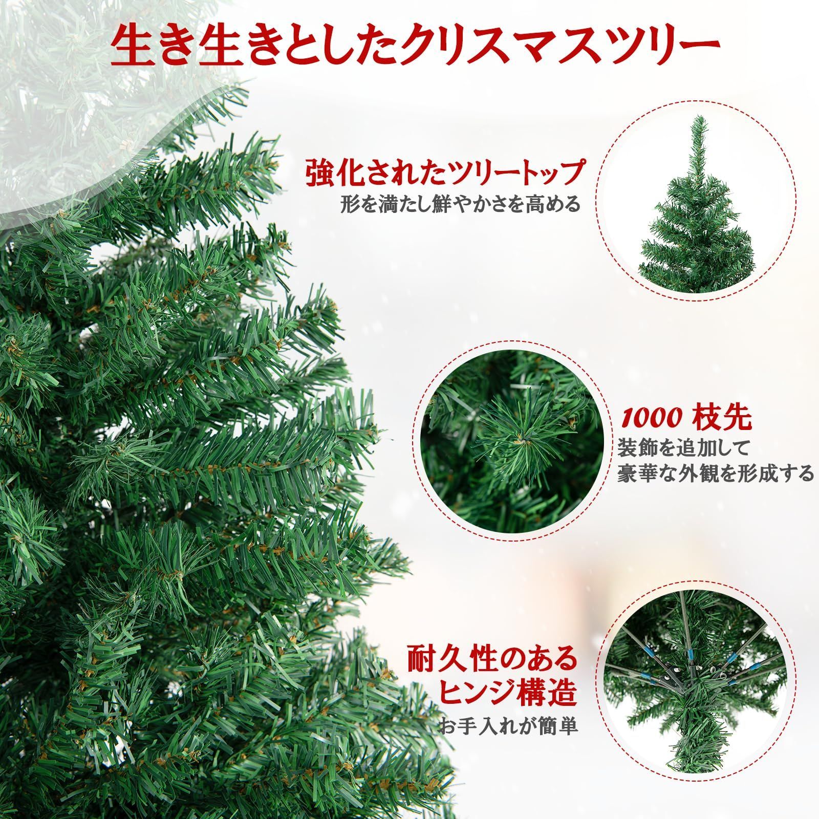 ??【カラー】グリーン【材質】PVC、金属 【ツリー高さ】180cm【枝先数】約1000本【重量】約5kg【梱包サイズ】89x26x24cm /6.5kg