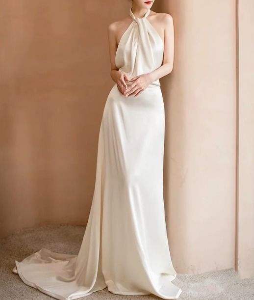 ホルターネック ウェディングドレス ロング サテン エレガント