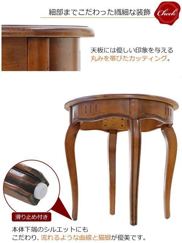 アンティーク調 サイドテーブル 約W 60 約D 約H 5 cm ラウンドテーブル クラシック調 レトロ調 木製 花台 ローテーブル コーヒーテーブル ナイトテーブル 猫脚 おしゃれ 机 家具 インテリア c antique f 55 選択 ブラウン