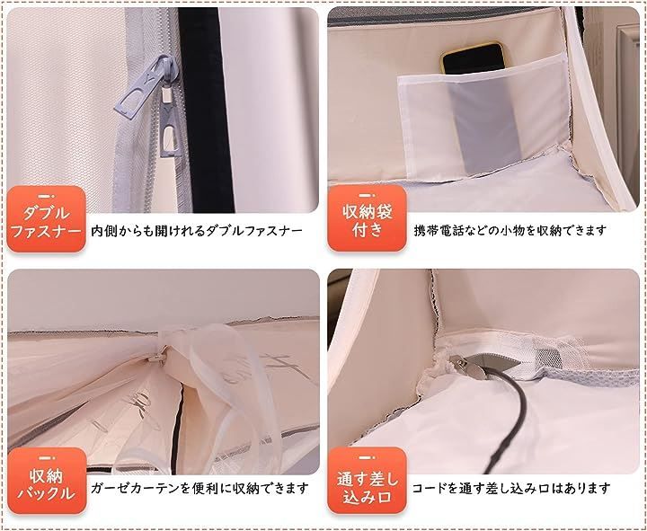 テント式で底までネットをしっかり張れるので、科学製品でなんか不安でしょう、これで物理的に遮断してぐっすり眠れそうで安心、しかも安全。