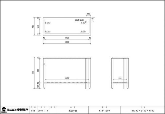 関連ジャンル作業台・ガス台>水切台>幅1200mm>東製作所