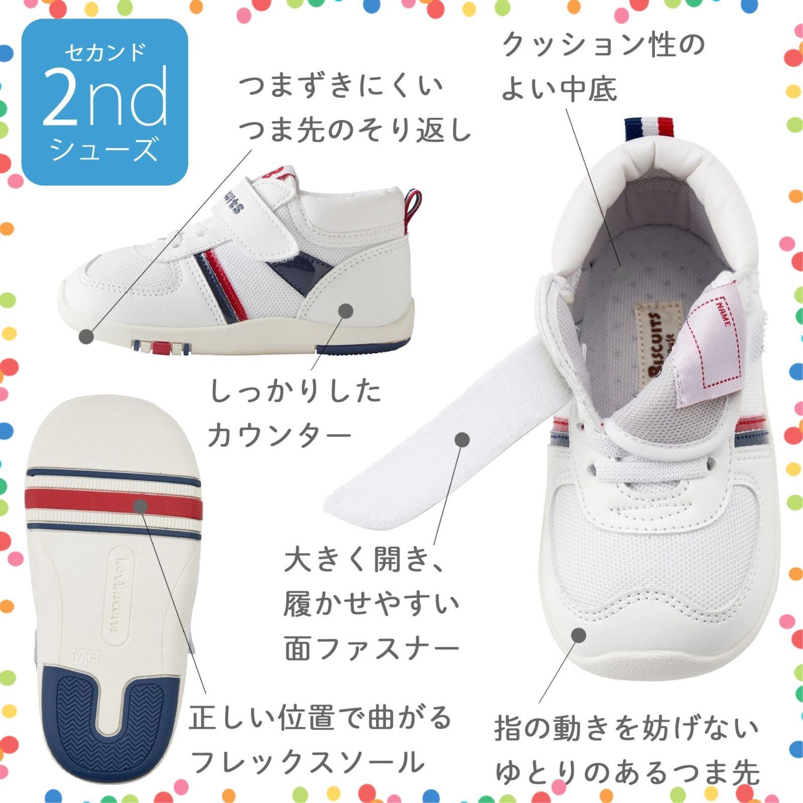 ミキハウス ホットビスケッツのスポーティセカンドベビーシューズ。
