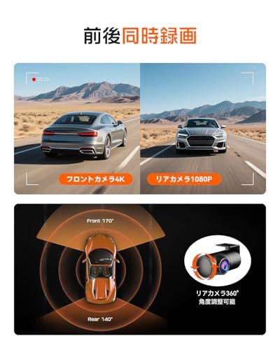 JADO ドライブレコーダー 前後カメラ 小型ドラレコ 4 K UHD 800万画素 IMX 415センサー搭載 GPS内蔵 Wi-Fi対応 WDR|HDR補正 スーパー暗視機能 F 1.5大口径レンズ 3.16インチ液晶 衝撃録画 Gセンサー 駐 a 5292478