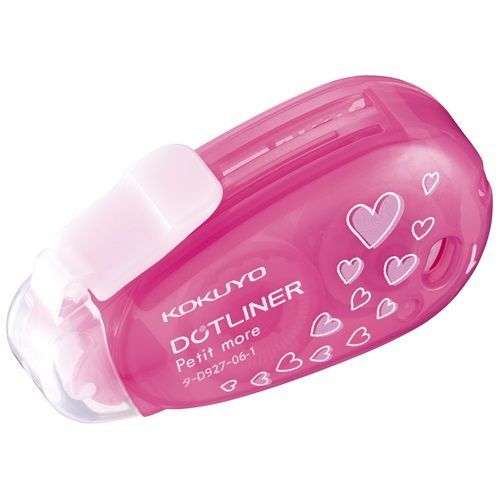 ●のり面までかわいいピンク色のハート柄●ペンケースにスッキリ入る超ミニタイプ●8m巻き●ゴミを防ぐフルカバーキャップ付き●最後まで軽くひける軽引き設計【検索ハッシュタグ】#コクヨ#テープのり#ドットライナー#ドットライナープチ
