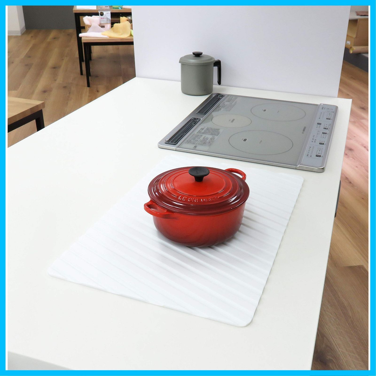 ●本品は断熱用シートではございません。ワークトップの耐熱や設置面の耐熱を超える熱い鍋、フライパンなどは置かないでください。本品及び設置面の変色や破損の原因となります。