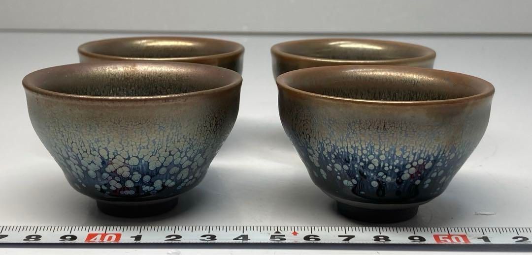 佐々木禅 底に禅銘 窯変天目 ぐい呑 盃4客 タカサ東金6 0307 2 F