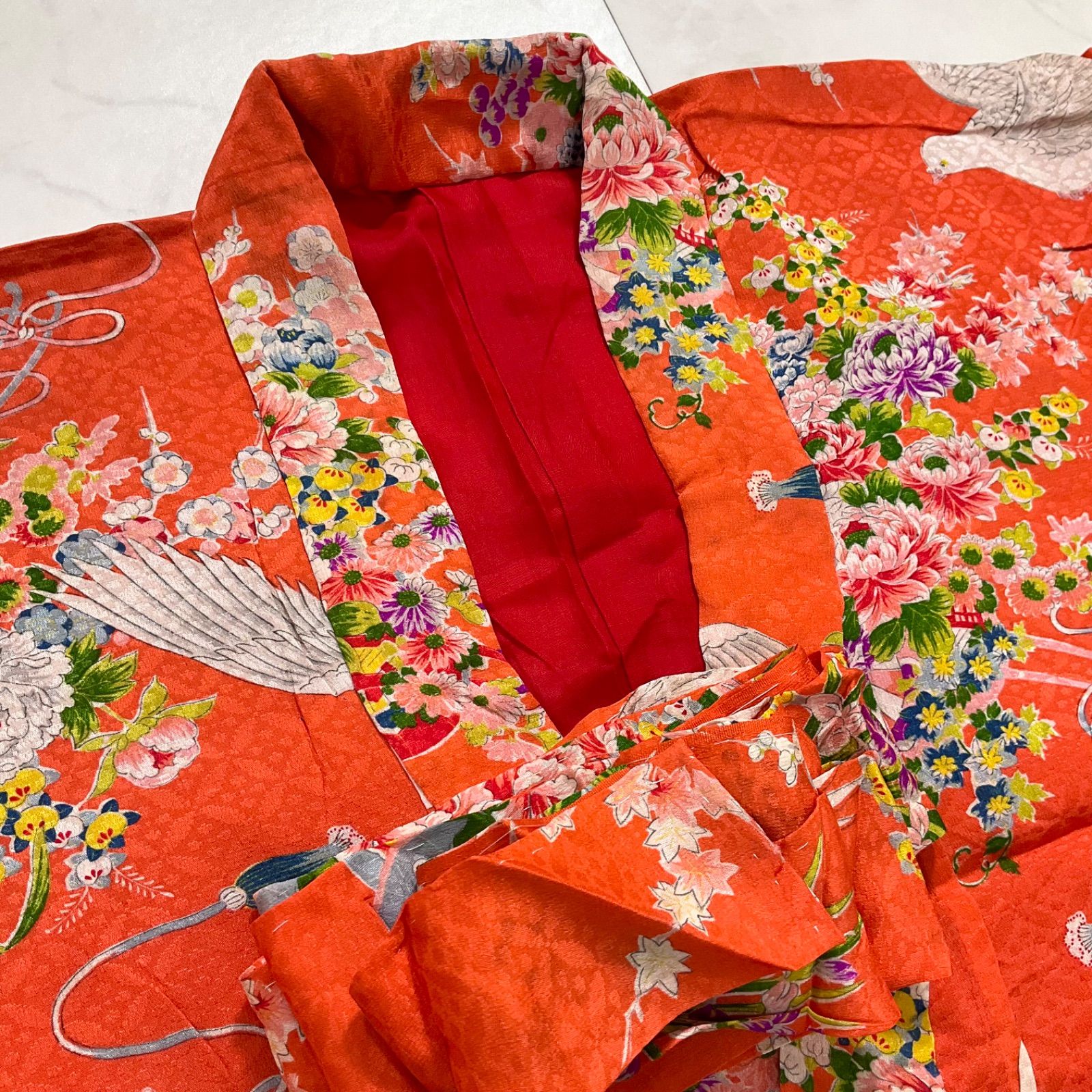 kimono one 5歳くらい用 アンティーク子供着物 綸子正絹 七五三 裄60肩丈117 5 七五三お詣り女の子着物こどものひお正月卒業式十三詣り G 314