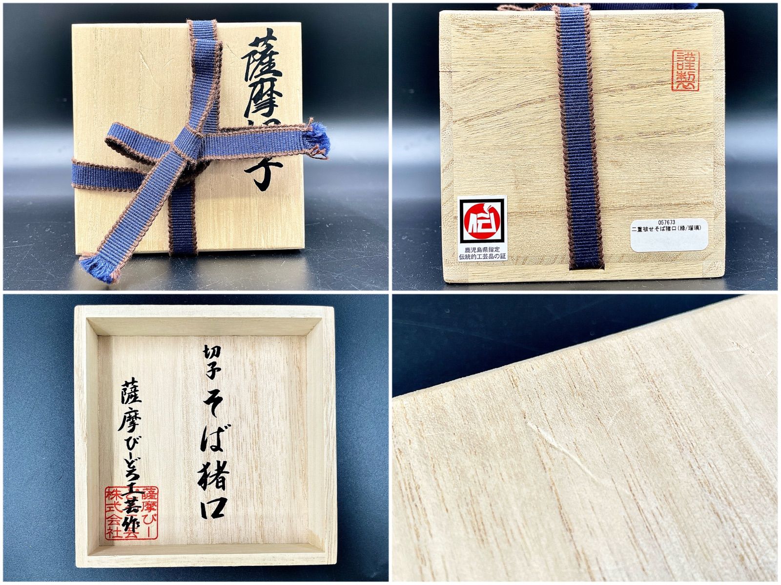 C 12071 薩摩びーどろ工芸 そば猪口 薩摩切子 緑 瑠璃 最 ハンドカット 二重被せ カットガラス 伝統 サイン入り