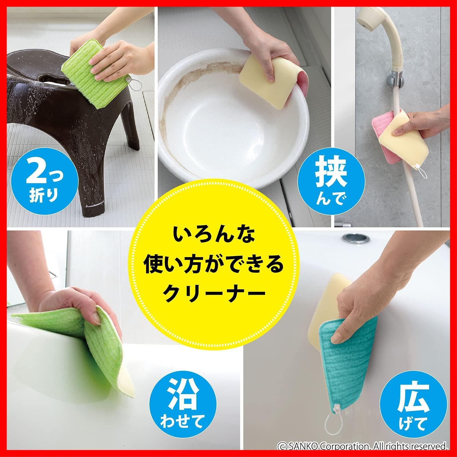 Sanko サンコー お風呂 スポンジ 浴槽 掃除 お得用 3色入 水だけでも汚れが落とせる特殊繊維 バスピカピカ びっくりフレッシュ 日本製 BF-53