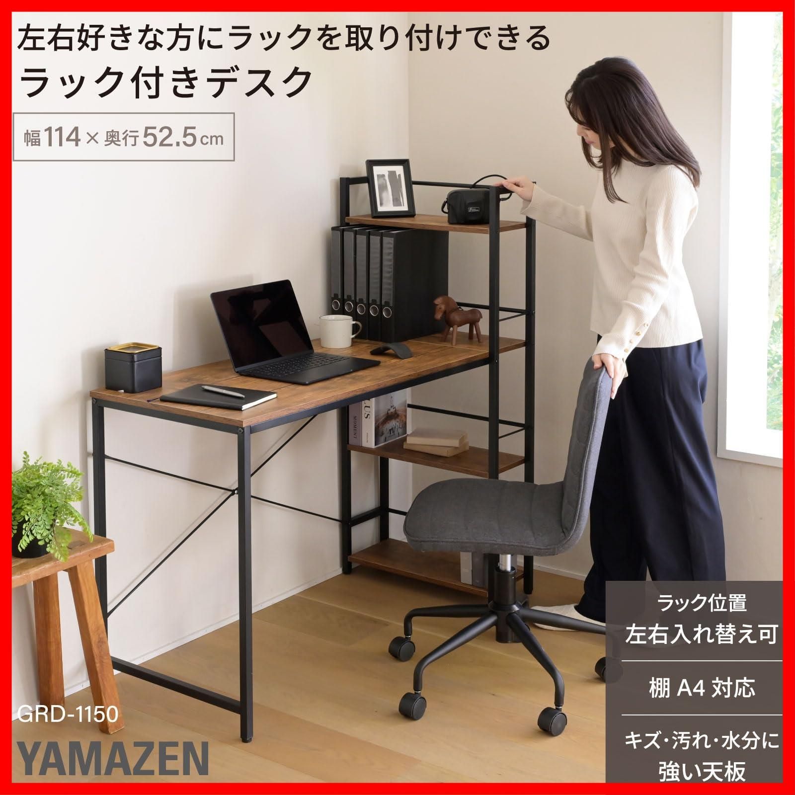机 棚付き パソコンデスク 棚は左右付け替え可 PCデスク 勉強机 A 4対応 ラック付きデスク 傷汚れに強い天板 幅114 奥行52 5 高さ120 cm デスク ワークデスク 省スペース 収納 山善 YAMAZEN アンティークブラウン サン