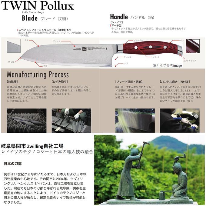 TWIN POLLUX 三徳包丁 180mm(305×44×18(刃渡り180)mm 質量:170g)