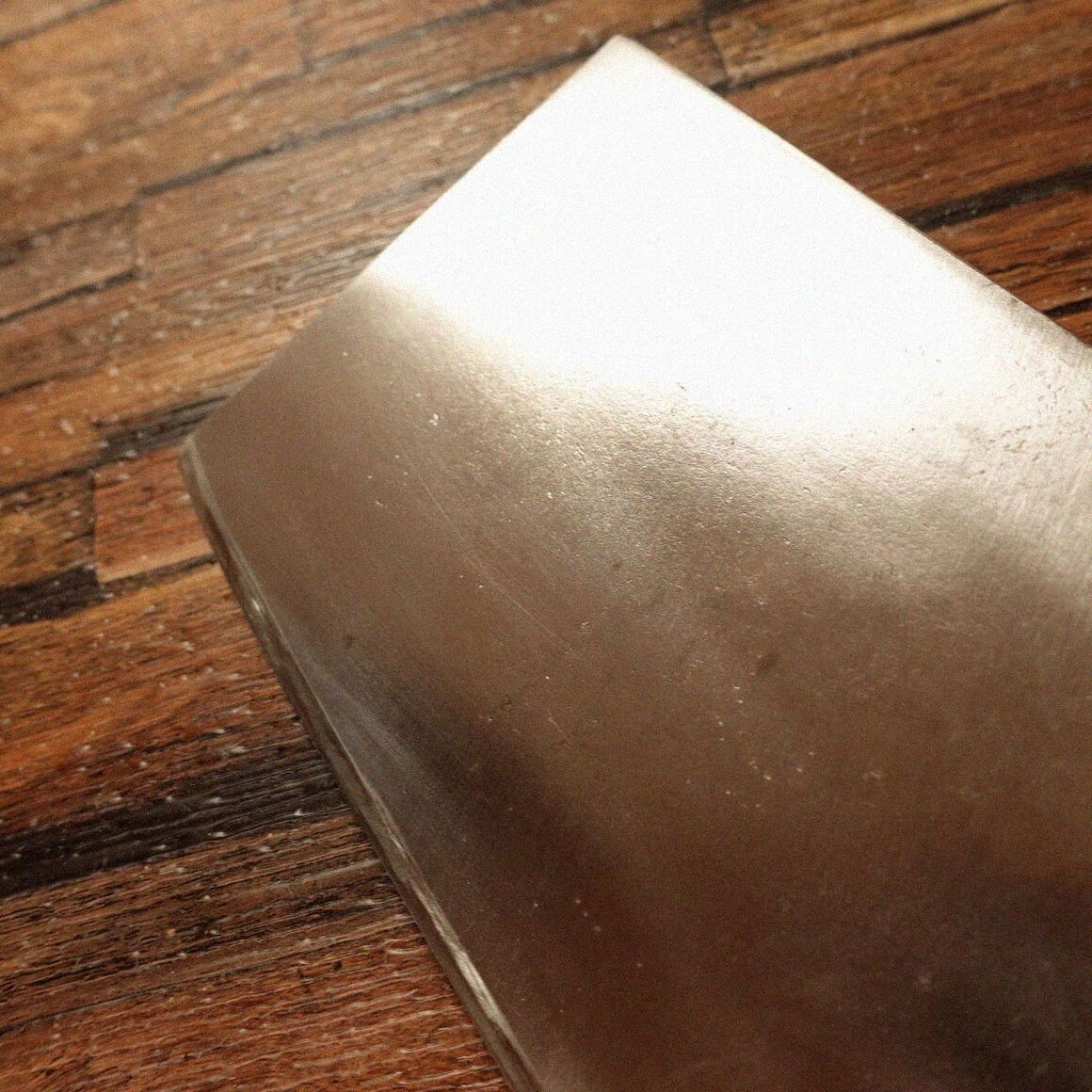 このお品は両刃のハガネ製で、ハガネ製の素晴らしい品質の中華包丁です。杉本のお品かと思いましたが、銘が三崎以外ありませんので、詳細不詳なのでお値段お安くしていますが、大変素晴らしい中華包丁でしょう。