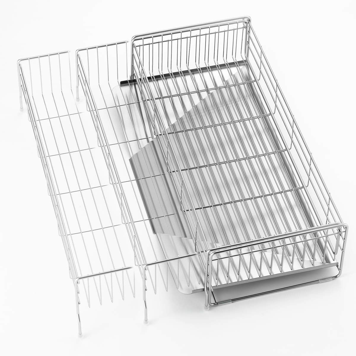 水切りラック シンクサイド 幅の広がる水切り 幅26 cm 奥行57 ステンレス カトラリーポケット付き シンク上 スリム 伸縮 水切りかご 水切り 大容量 水切りカゴ ステンレス水切り 水切りバスケット 水が流れる