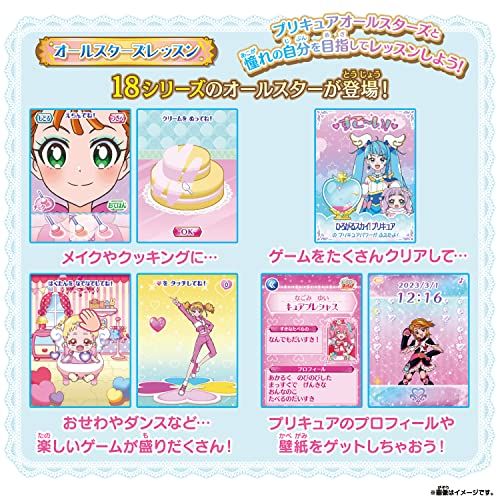 オールスターが登場するキラキラのかわいいミラーパッドです。プリキュアオールスターズ18作品のゲームをはじめ、71種以上のあそびを搭載!