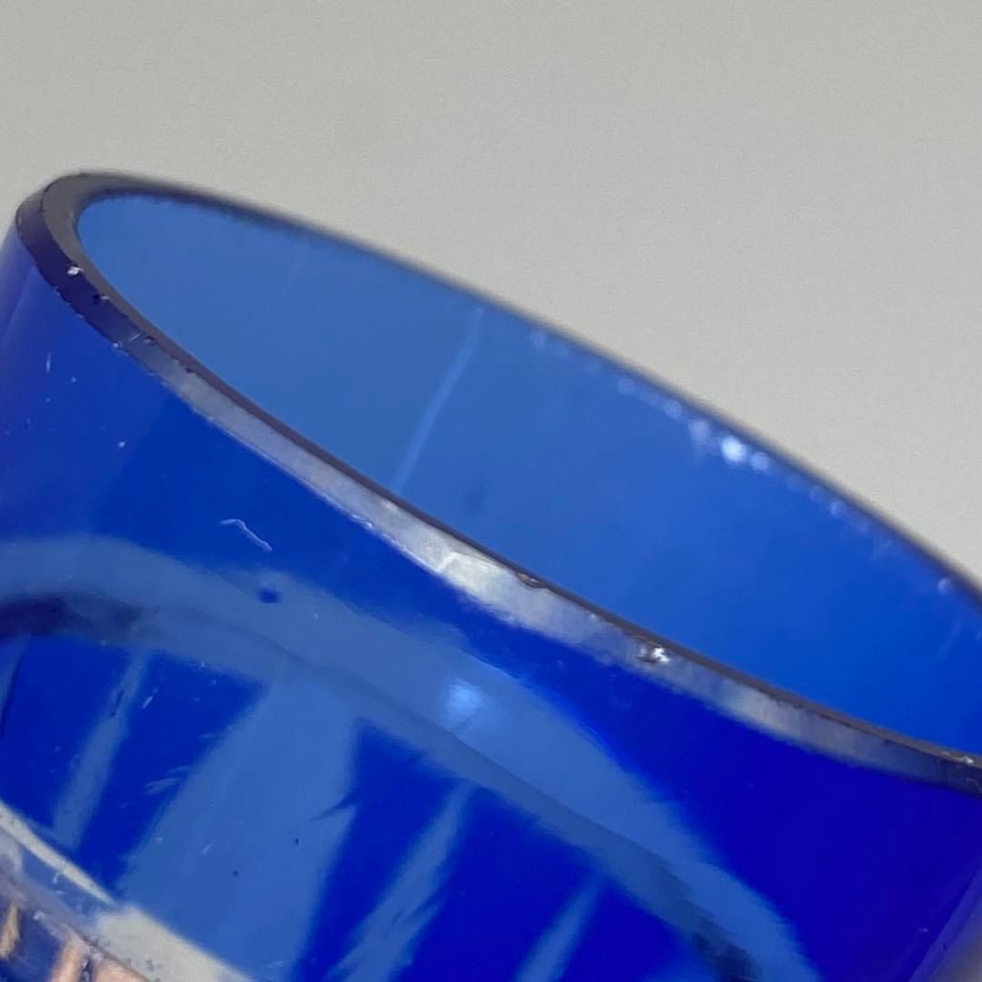 時代 ブルーガラス ハンドカット 切子ショットグラス 5客東金6 0225