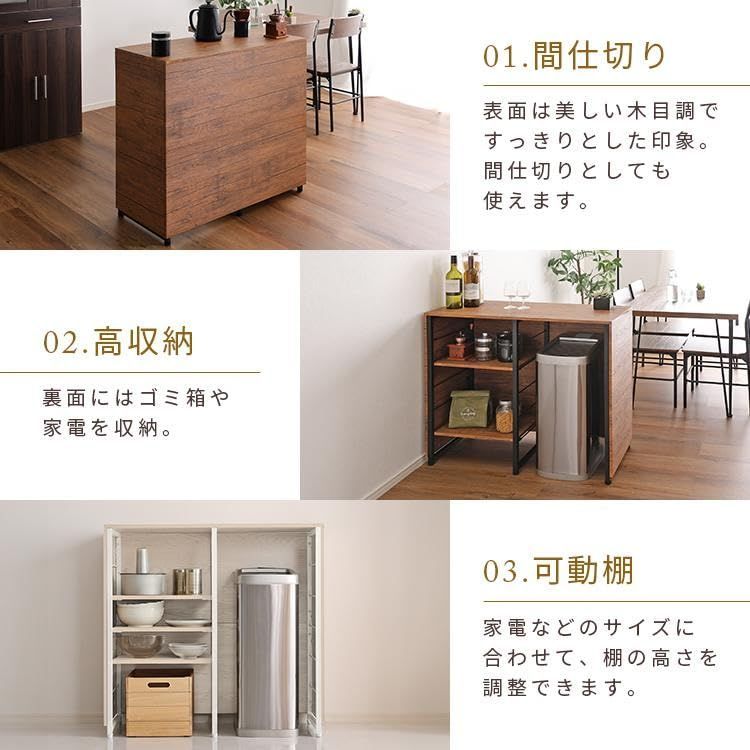 KC 90 WAL 木目あり ウォールナット 幅88 cm 間仕切り ゴミ箱収納 キッチン収納 ゴミ箱上ラック キッチンラック キッチンカウンターテーブル グランテイスト