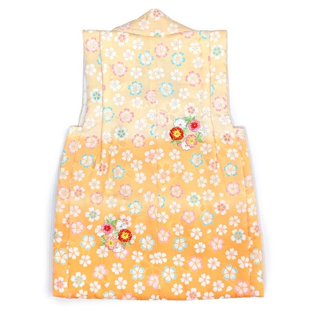 七五三 三歳 女の子 被布セット 正絹被布コート 草履 巾着 足袋 4点コーデセット クリームx山吹ぼかし 桜 IHF 867 4 set 01