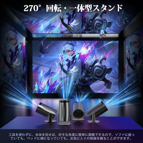 プロジェクター 家庭用 18000 LM 270°回転 4 K対応 Android TV搭載 小型 高輝度 天井投影 1080 P Wi Fi 6瞬間接続 Bluetooth 5 HI FIスピーカー内蔵 短距離投影 自動 62 a 69771