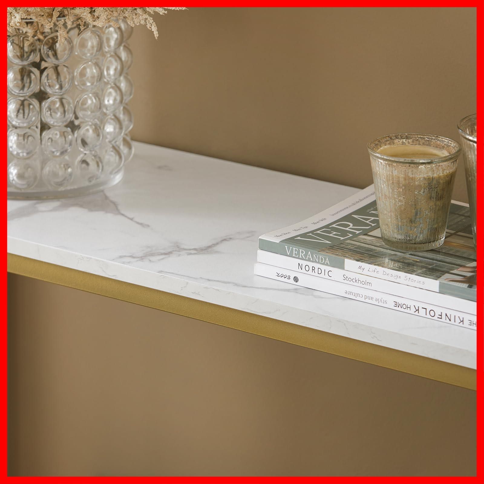 ?【おしゃれ大理石調テーブル】金属色と大理石感のデザイン、スリムなサイズ。玄関口や、ソファーサイドに置くと、部屋をおしゃれに変わります。寝室、リビング、玄関、キッチンどの場所でも活用できます。