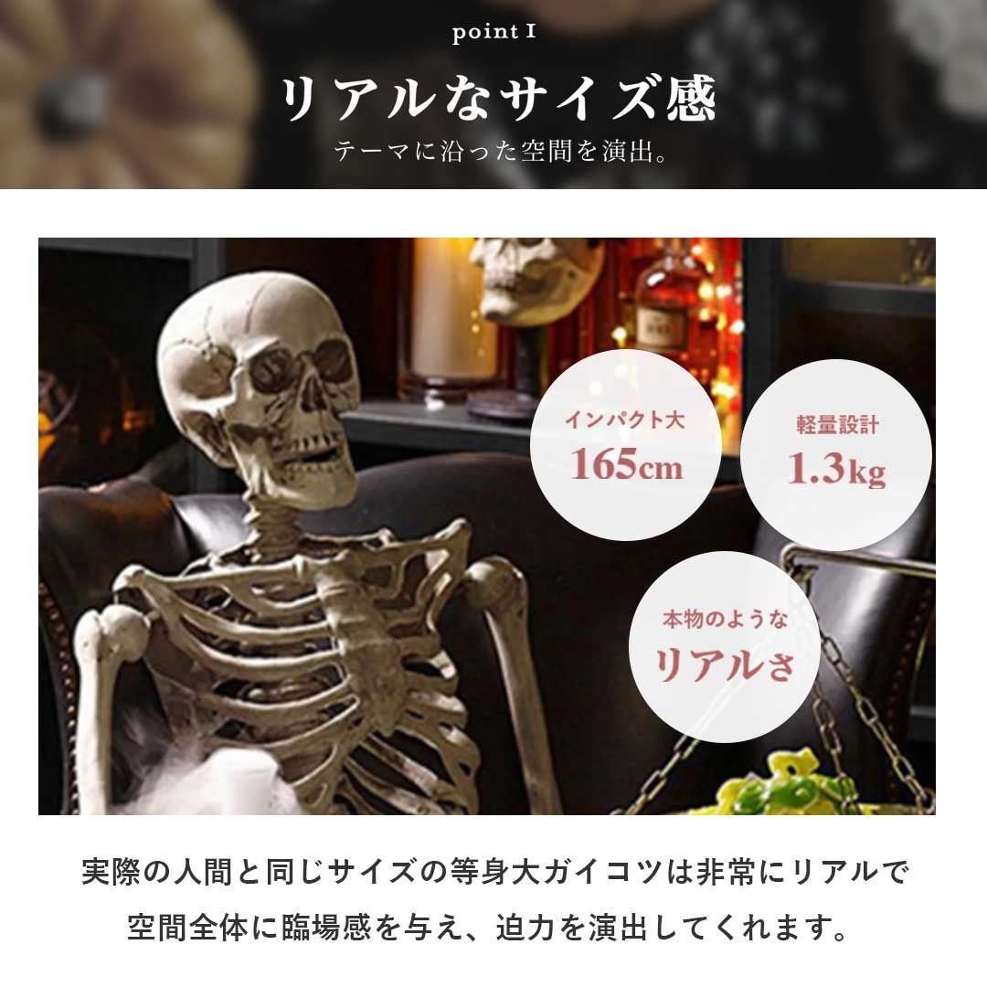 こちらの骸骨は本物と見間違えてしまうほどリアルに作られていて、かなりインパクト大。天井から吊り下げればその迫力でイベントやパーティーで大人気になります!