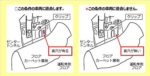 車両生産時期によっては、センタートンネルの長穴が無く、装着できない場合があります。