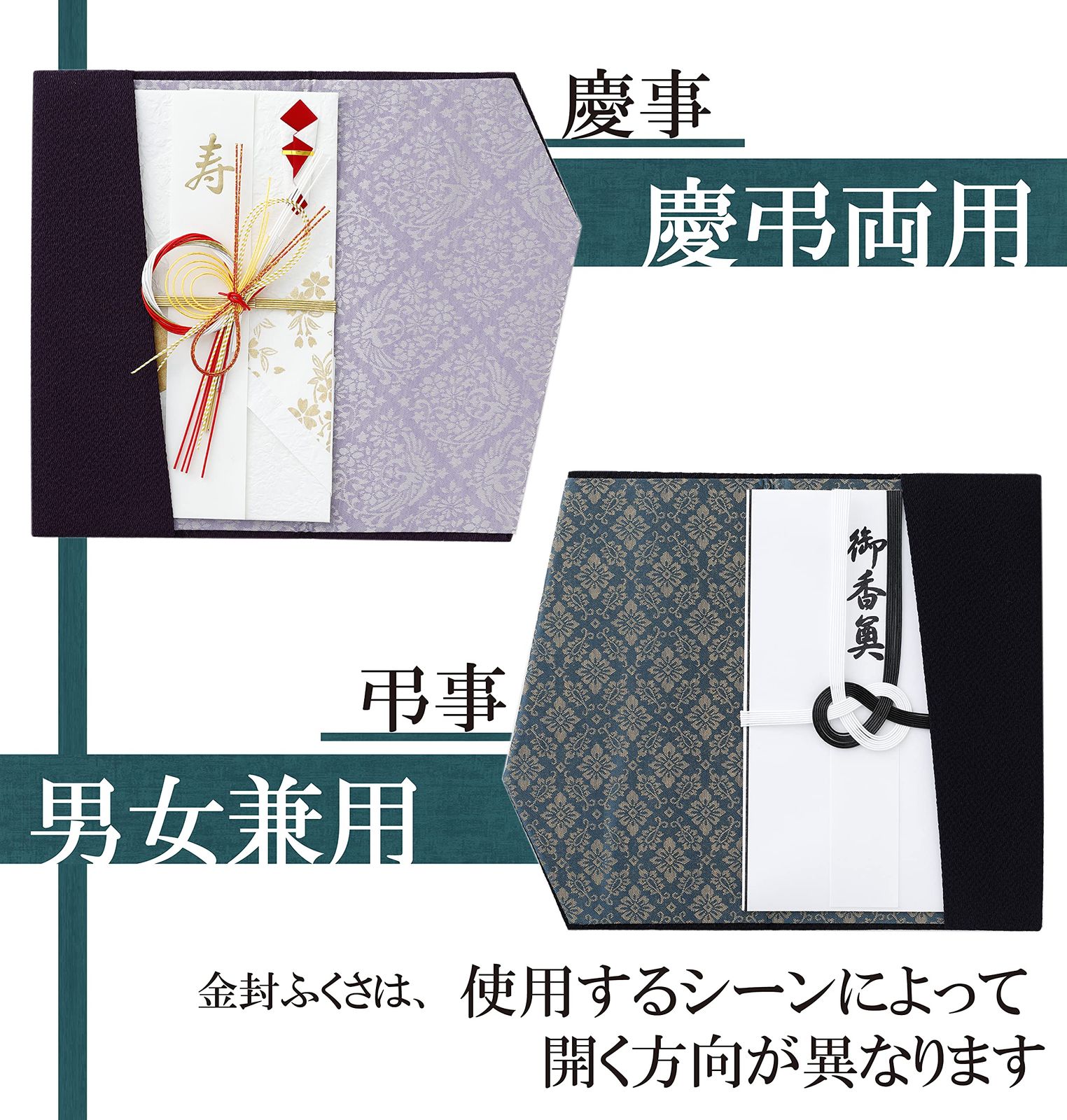 <男女両用 オリジナルカラー>「紺×花菱子葵」 「紫×鳳凰」の2カラー。当社だけのオリジナルカラーでご用意しています。 格調高く、おしゃれな色使いで、年齢、性別を問わず、慶弔どんな場面でもどなたにもお使い頂けます。<ポケットタイプで使いやすい> たたむタイプの袱紗とちがって、ポケットに差し込むだけ。スマートに出し入れできます。
