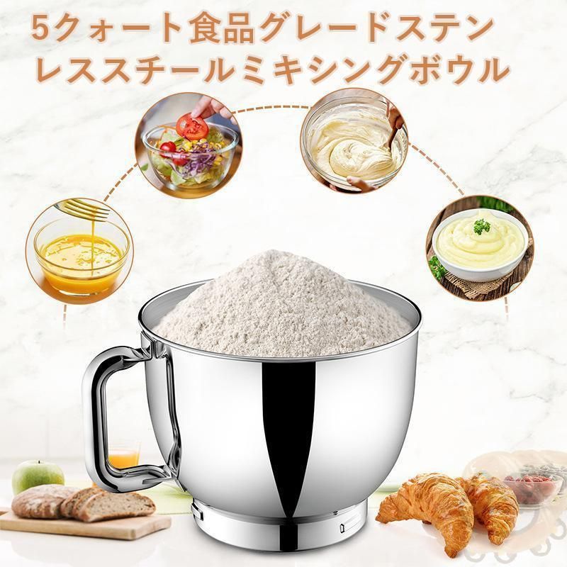 静音設計 15分タイマー機能 スタンドミキサー 卓上ミキサー 3種類アタッチメント付き ミキサー 練る 混ぜる 泡立てる 3 L 6 L大容