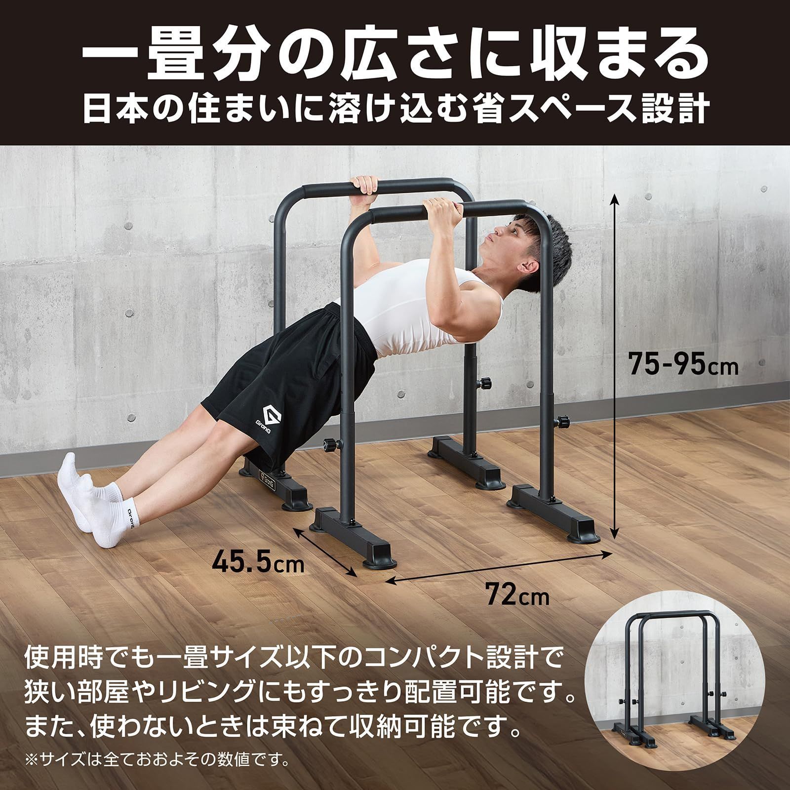 在庫処分 グロング GronG ディップススタンド ディップスバー 高さ5段階調節 筋トレ器具 耐荷重120 kg