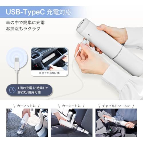 様々なシーンで活躍:コードレス設計で、窓の隅、ソファ、マットレス、キーボード、卓上、車内などのホコリや汚れを効果的にお掃除。420gのコンパクトさで旅行や外出先でも大活躍。