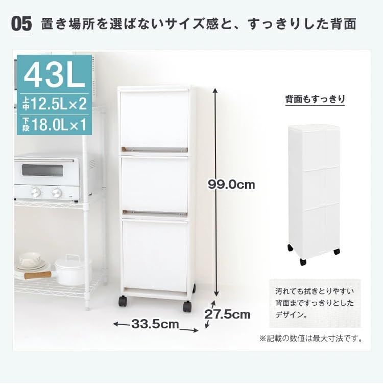 機能性とデザイン性にこだわったダストボックス。プッシュで簡単開閉。20L×3個でたっぷり入る60L