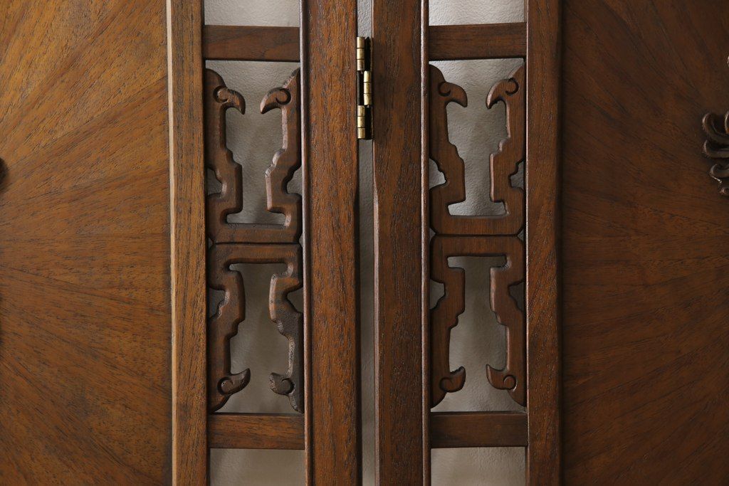 四連衝立て 和製ビンテージ 象嵌 彫刻 R 054822