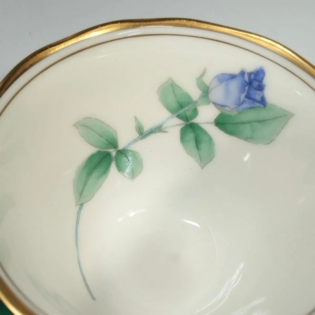 グリーンカップの内側に色違いのバラ模様です。専用箱に入れたままで未使用の長期保管品です。