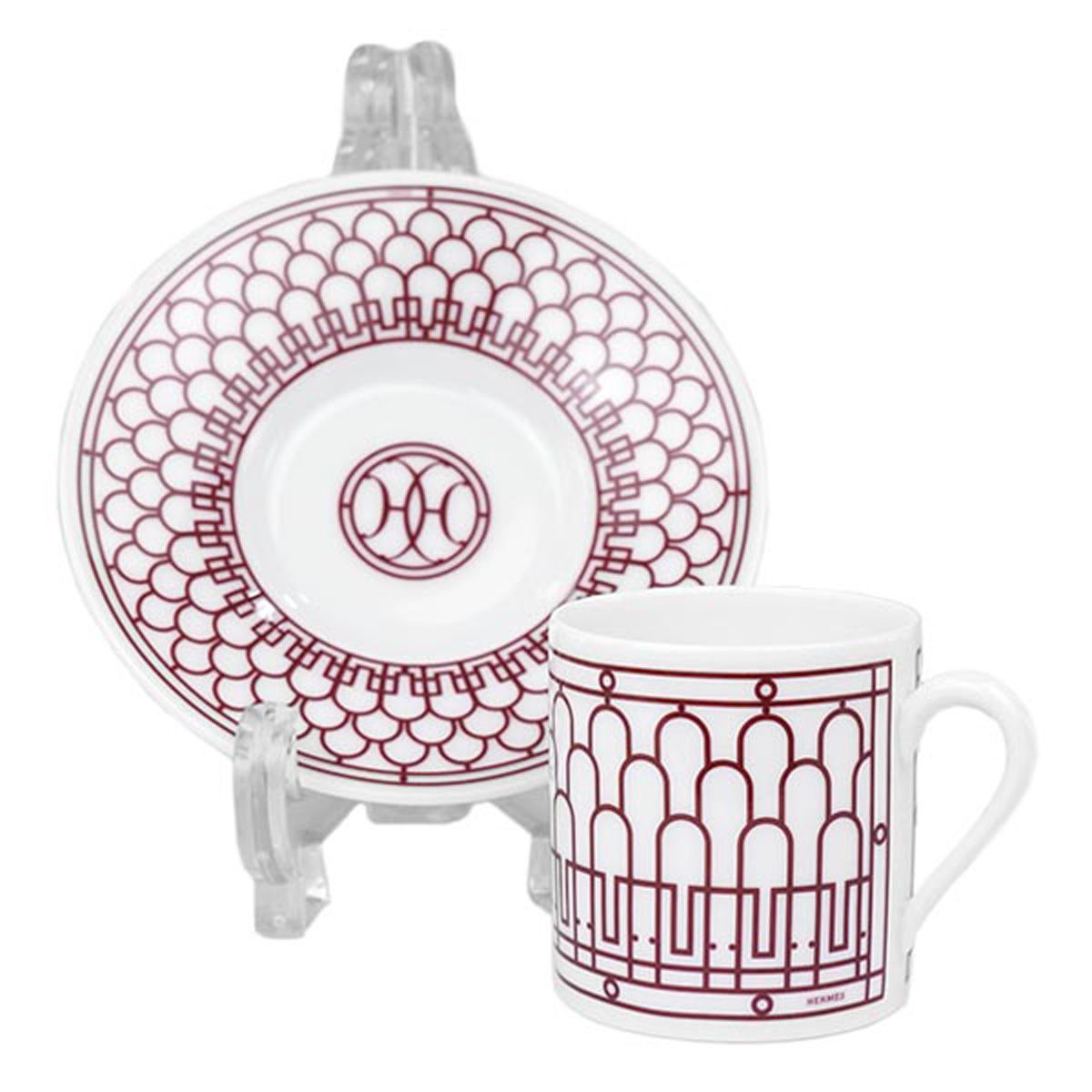 エルメス 食器 HERMES 041017 P H DECO ROUGE COFFEE CUP AND SAUCER Hデコ コーヒー カップ ソーサー ペア レッド ホワイト