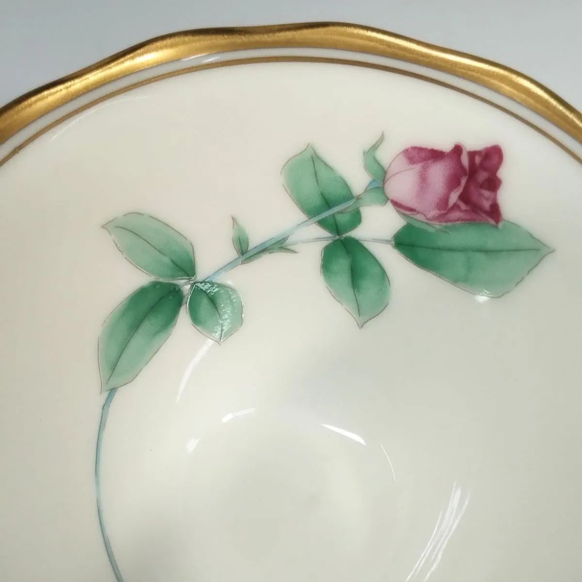 グリーンカップの内側に色違いのバラ模様です。専用箱に入れたままで未使用の長期保管品です。
