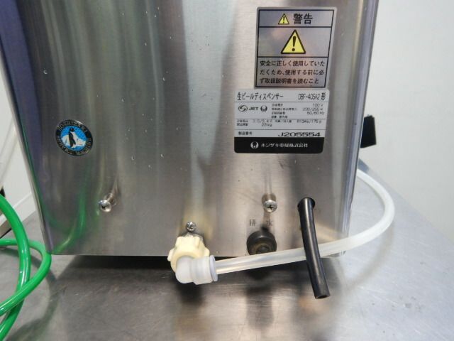 1999年製ホシザキ1口ビールサーバーDBF-40SA2ヘッド減圧弁付ビアディスペンサーW292D497(+135)H482mm23kg商品は新品です。多少の傷汚れあります。動作確認済みです。ヘッドはアサヒ製です。アサヒ/サッポロ/サントリーの樽で使用できます。管路はスポンジ通し流水洗浄済です。ビール樽、炭酸ボンベをご用意いただければ使用可能です。攪拌モーター、氷結動作正常でした。ガス漏れは確認されませんでした。ヘッド、コック類はすべて分解して洗浄してあります。水槽に水を張ってから使用してください。台は付属しません。状態画像にて判断願います。よろしくお願いいたします。送料大型宅配便S