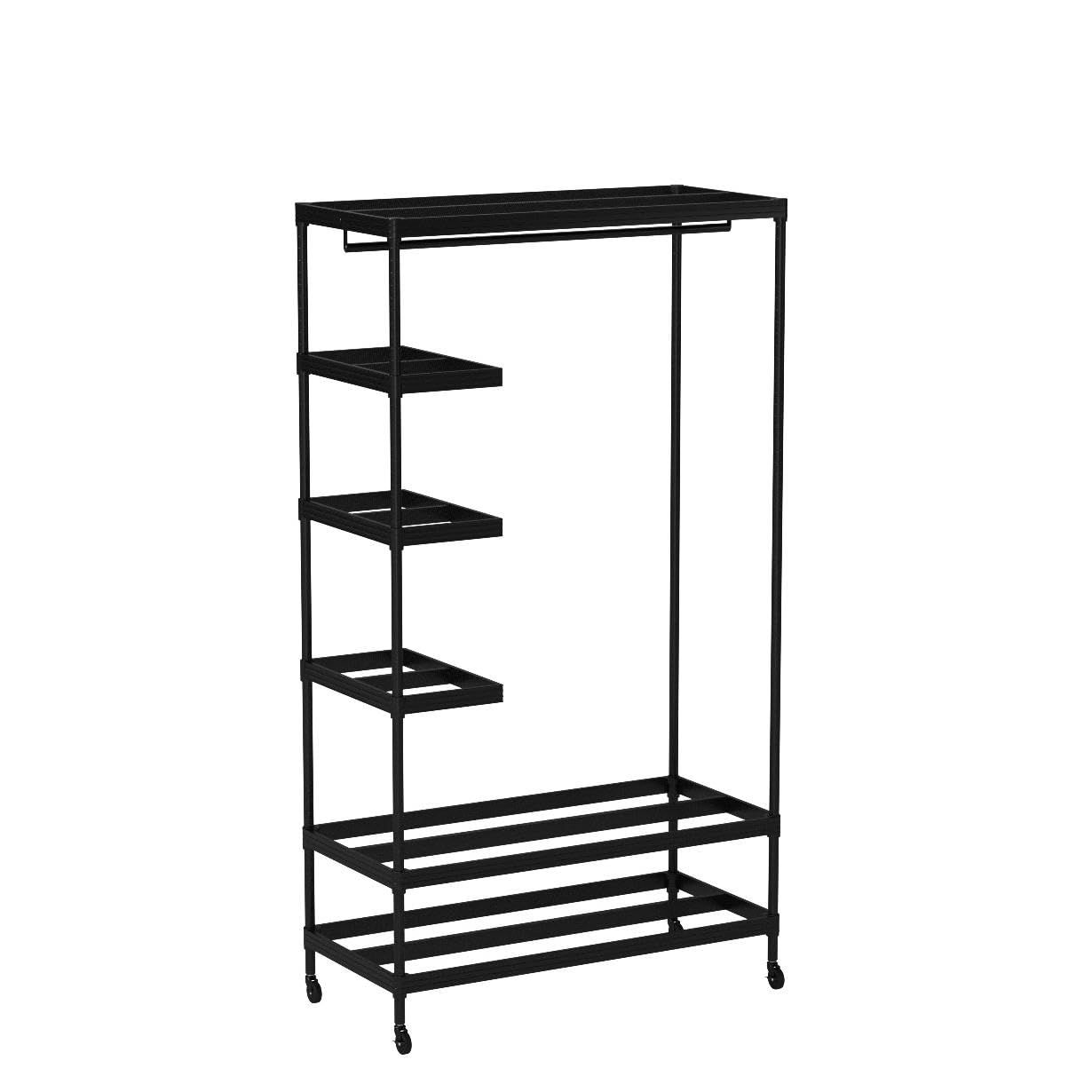 山善(YAMAZEN) ハンガーラック (ワードローブ) ハーフ棚付き 服・カバン・小物がこれ1つで収納できる 頑丈 (全体耐荷重125㎏) キャスター付き 幅100×奥行46×高さ179cm 組立品 ブラック MNS-1810CJ(BK)
