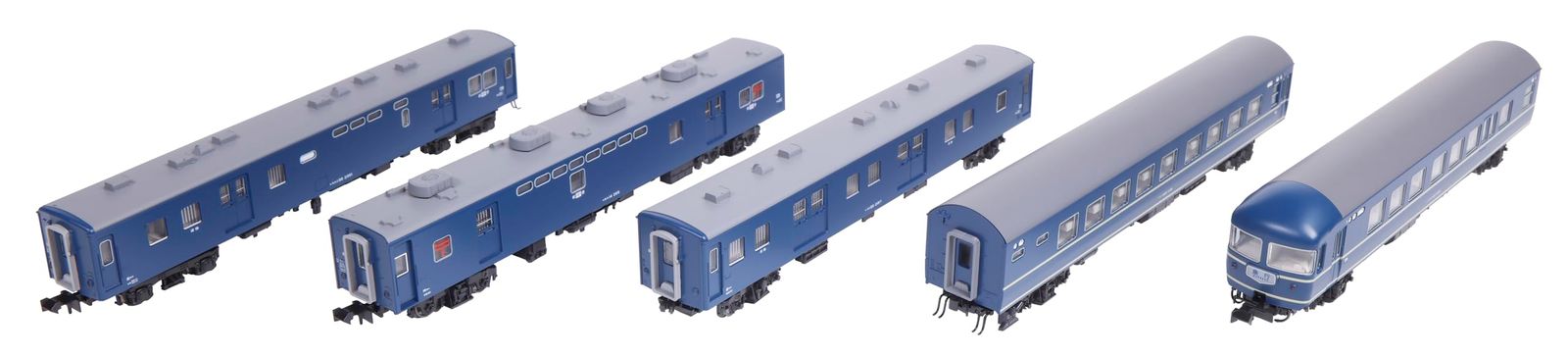 20系寝台車、12系急行形客車、郵便車、荷物車で組成された昭和50年代の夜行急行列車を楽しめる客車編成セット。