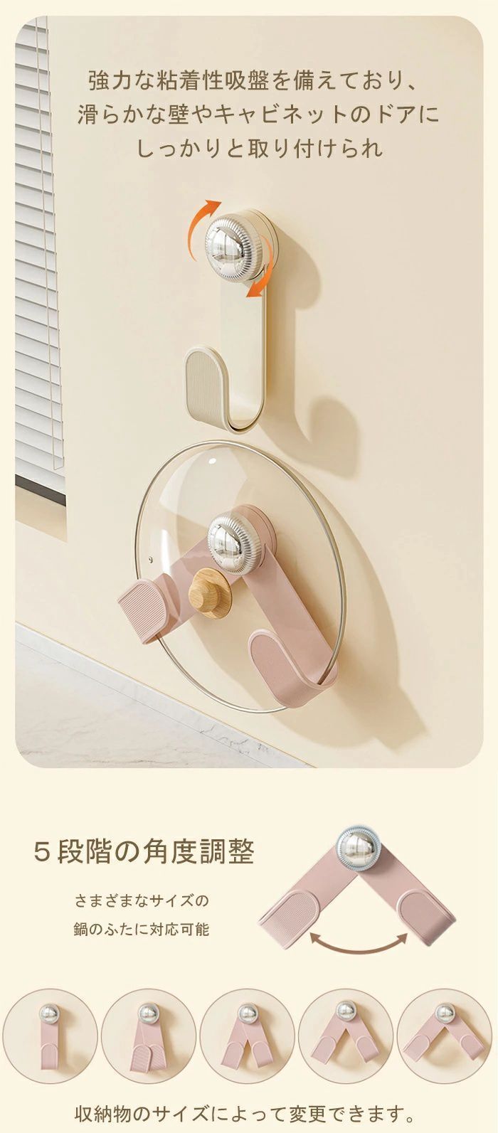 クリエイティブなデザイン:吸盤式回転鍋蓋ラックは、ユニークな吸盤デザインを採用しており、安定性と信頼性が高く、鍋蓋の保管に便利です。