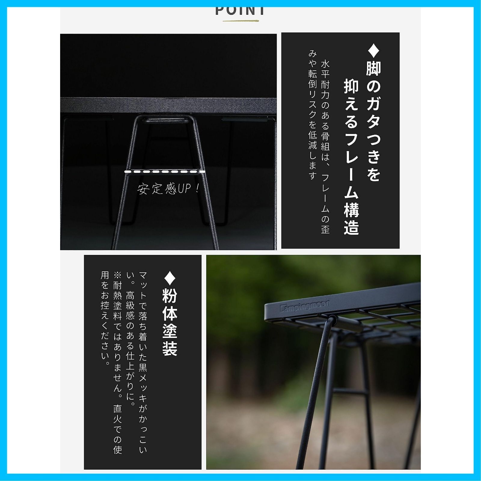 材質:スチール黒メッキ(こちらはミニマルラック 3脚の販売となっております。通常のフィールドラックより天板の幅が狭く、レイアウトが窮屈なキャンプスペースにも合わしやすいサイズになります)。