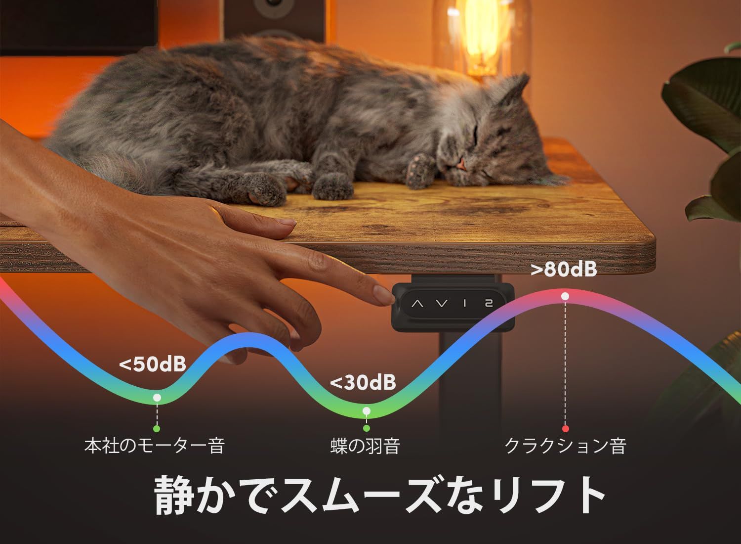 【安定性&静音性】FEZIBO電動昇降式デスクは、高品質モーターにより昇降時も揺れにくく、パワフルかつスムーズな動作を実現。昇降音は45dB以下の静音設計で、夜間の作業でも周囲に迷惑をかけることなく安心。安定性と静音性を兼ね備えた昇降テーブルとして、人気の昇降式 テーブルでも高評価を獲得しています。