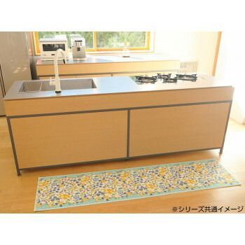 川島織物セルコン ミントン ガーデンナチュール キッチンマット 50 240 cm FT 1230 BG ブルーグリーン