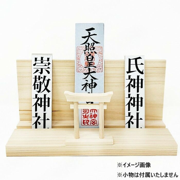 神棚のセットです。鳥居には、ヒノキ材の良質な部分のみを厳選し、ひとつひとつ手作りで政策しています。コンパクトなサイズでモダン神棚に置いたり、スペースをあまり取らずに飾ることができます。全てがヒノキでできた鳥居です。ヒノキは、日本の伝統的で高級な建築材であり、鳥居に使用することで風格や趣を演出します。鳥居には木の質感や香りが残っています。