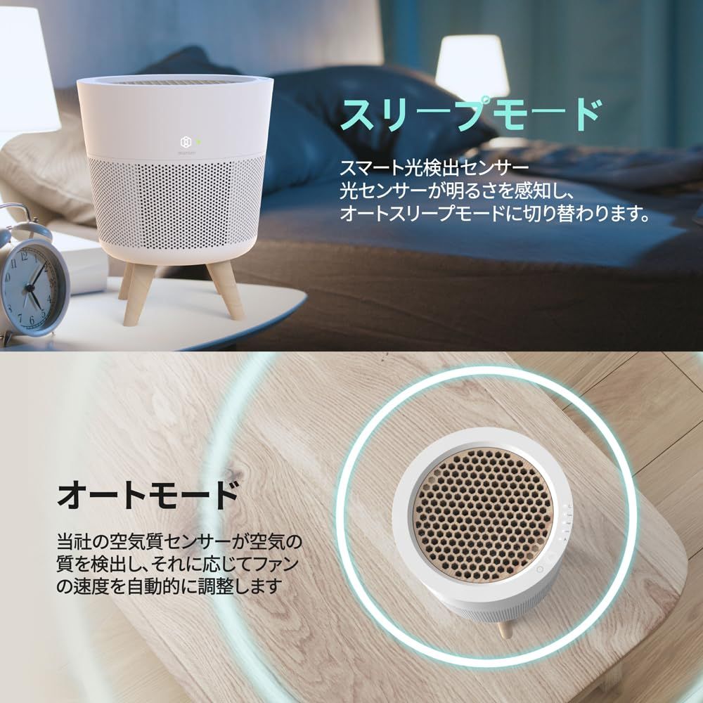 IMUNSEN 空気清浄機 原木檜フィルター搭載 花粉対策など IFデザイン受賞 睡眠モード付き 寝室に最適 スマートな自動照度センサー M 002 ホワイト