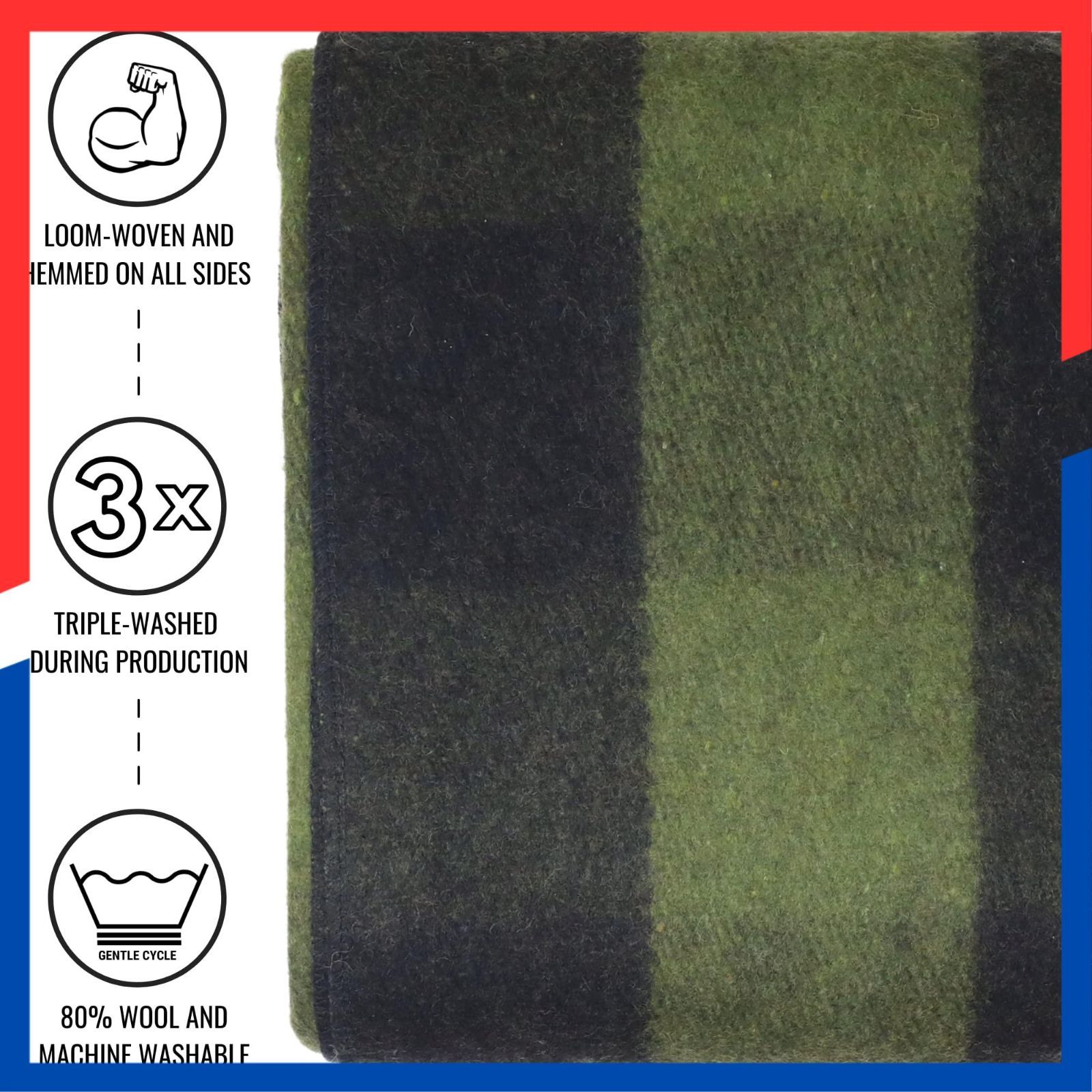 Arcturus Backwoods ウールブランケット - 4.5ポンド 暖かい 重い 洗濯可能 Lサイズ | キャンプ アウトドア サバイバル & 緊急キットに最適 (オリーブグリーンバッファロー)