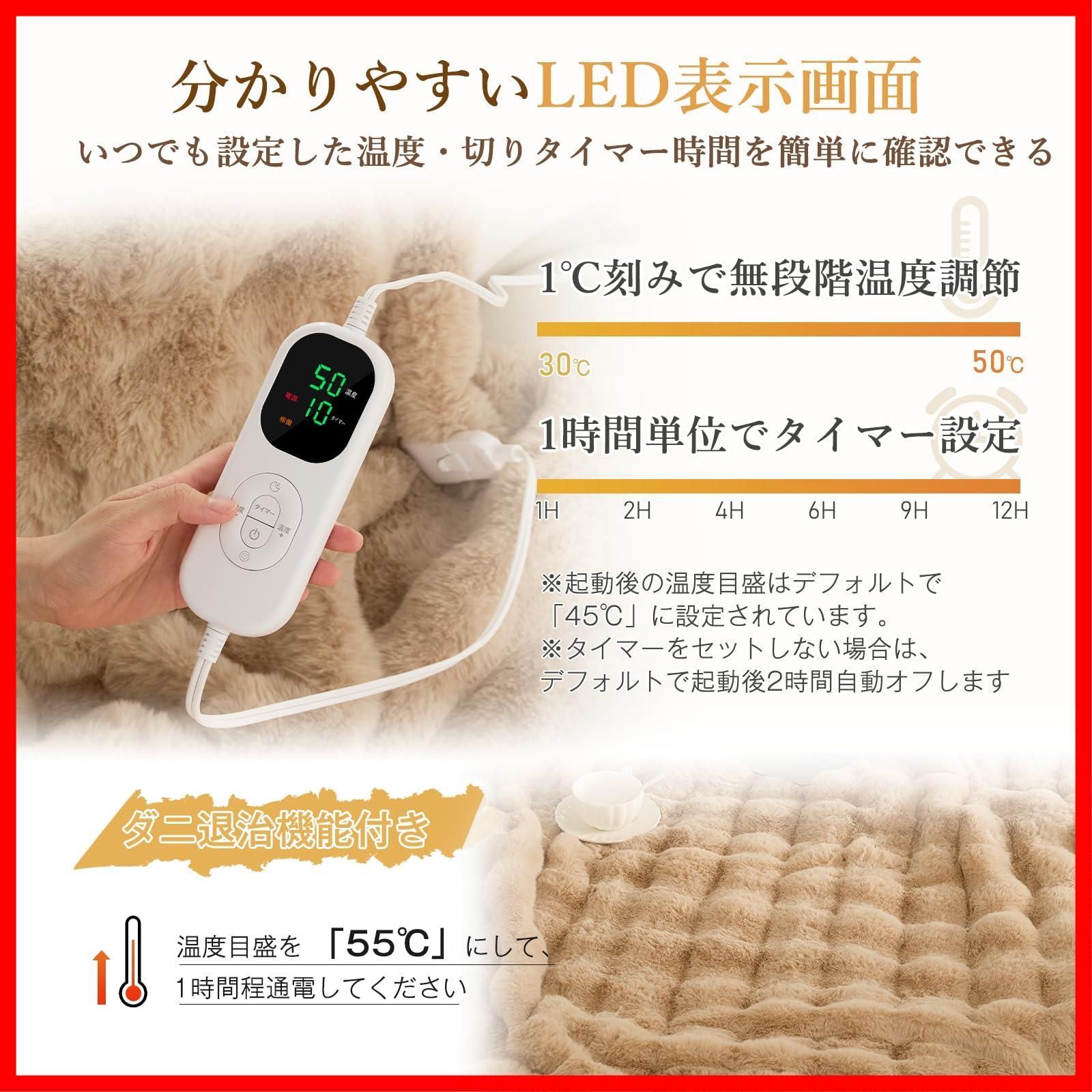 温度調整 電気ブランケット 過熱保護 プレゼント 190 130 cm 大判 大きいサイズ 厚手 ダニ退治 ダブル 8段階調整 2人 洗える 省エネ タイマー付き ベージュ 掛け敷き兼用 電気毛布