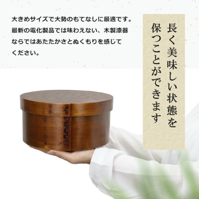 木製漆器は、余分な水分を逃がし、必要な水分を保つから、いたみにくくで美味しい!また、めしびつ自体が木のにおいがするため、ごはんもいい香りがします。最新の電化製品では味わえない、木製漆器ならではあたたかさとぬくもりを感じてください。