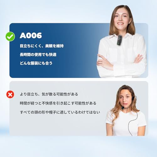 軽量マイク:マイクロホンは軽量素材でできており、持ち運びができるほどコンパクトです。 マイクは襟や胸にしっかりとクリップで固定されるため、ケーブルが絡まることがなく、ユーザーは自由に動くことができます。