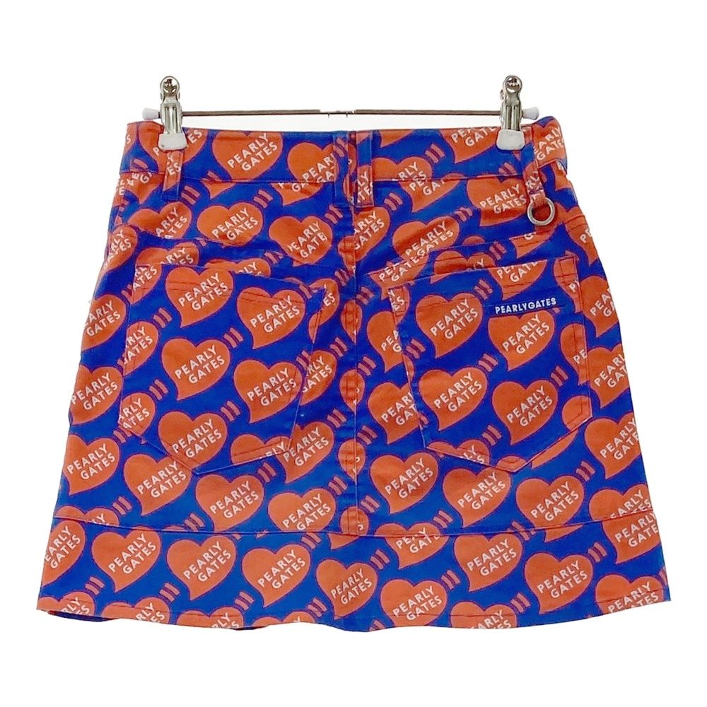 サイズ 00 PEARLY GATES パーリーゲイツ ストレッチスカート ハート 総柄 ブルー系 ゴルフウェア レディース ストスト