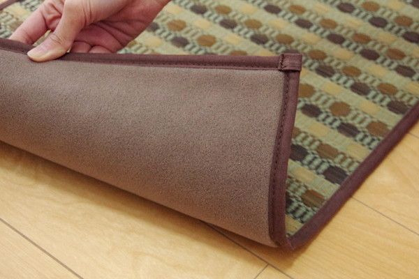 い草のキッチンマットです。キッチンマットの不満を解消してくれる商品です。化繊もののキッチンマットと比べ、汚れにくくシミになりにくいです。小さなゴミでも、ほうきで掃く、掃除機をかけるだけで取り除くことができます。い草自体が持つ油分により汚れを弾くので洗う必要がなく長くご使用いただけます。裏地にはウレタンフォームを使用しクッション性を持たせています。